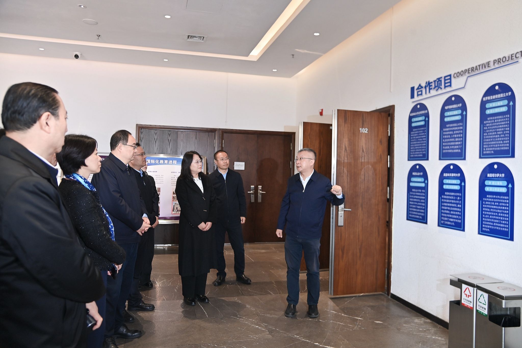 任友群一行参观了校史陈列馆,考察了秦创原(延安大学)创新促进中心、汉字研究中心,并就校地融合发展、教育国际化、语言文字研究等相关工作进行了现场交流。