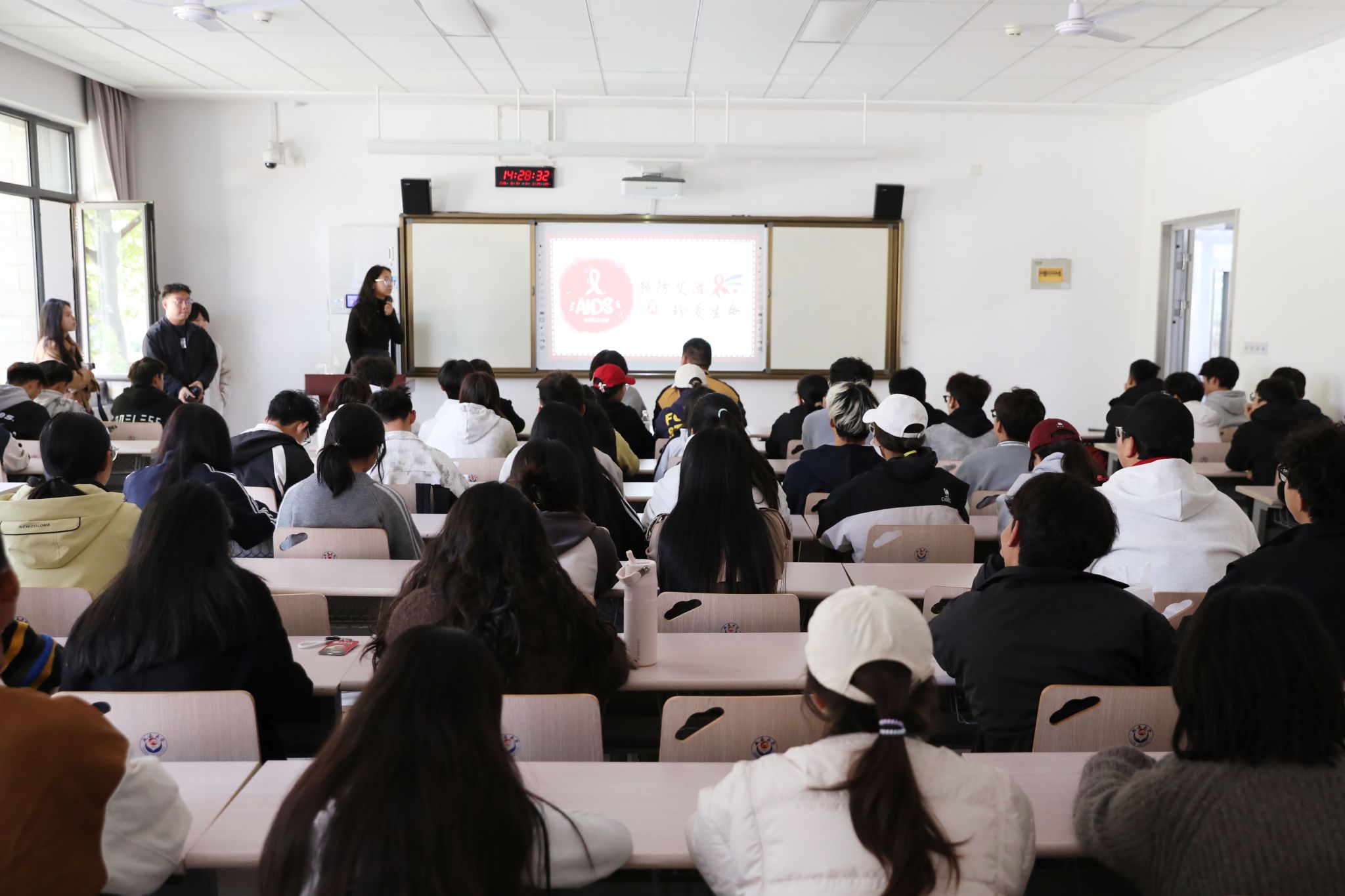 活动特别邀请市疾控专家王春霞主任以《预防艾滋 珍爱生命》为主题开展讲座,详细介绍了艾滋病的定义、流行形势、发病机制、传染源、感染途径、高风险人群,艾滋病防治措施及常见机会性感染的诊断与治疗等内容。讲座最后设置的互动答疑环节,让听众获得个性化的指导,为每位同学解开困惑。