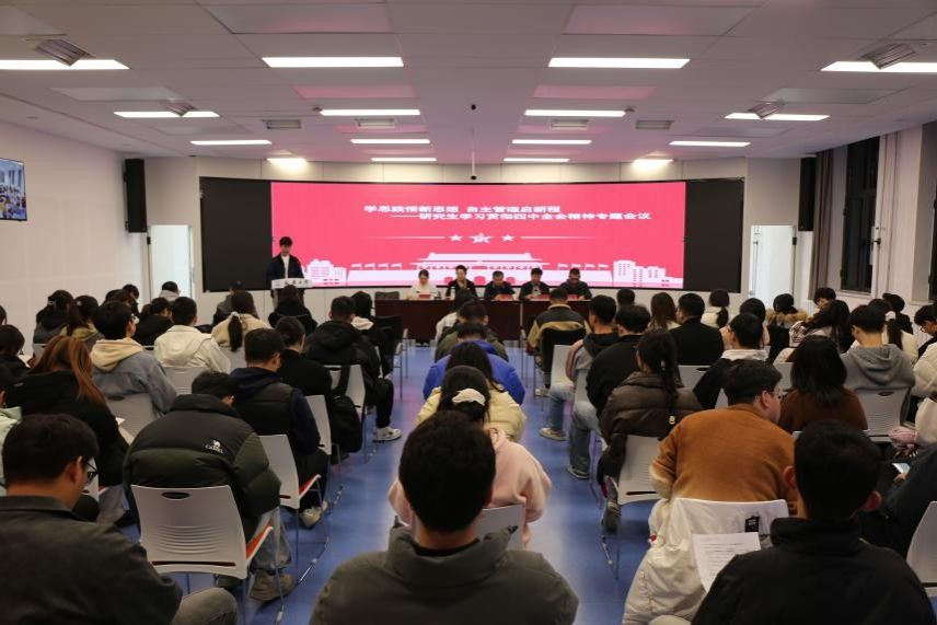 党委学工部副部长王红在致辞中表示,会议聚焦“学思践悟新思想,自主管理启新程”主题,精准扣住了党的二十届四中全会精神与研究生成长的契合点。她勉励同学们,一要以“学”铸魂,做扎根信仰的追光者;二要以“管”赋能,做激活创新的实践者;三要以“成”作答,做堪当重任的奋进者。