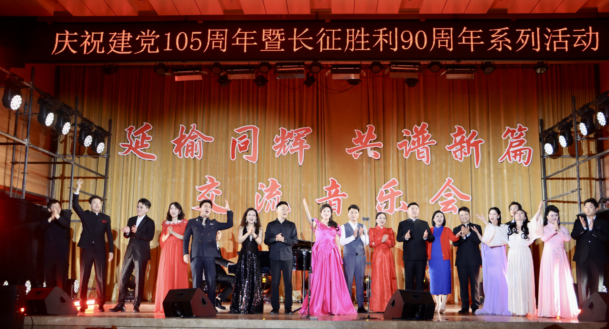 此次音乐会不仅是两校艺术教学成果的一次精彩展示,更是一场两院教师同台展现的精彩思政课堂。舞台通过红色旋律与时代交响的共鸣,共同回顾了党的光辉历程,重温了伟大建党精神与长征精神,进一步坚定了艺术为人民服务、为时代抒怀的初心与使命。