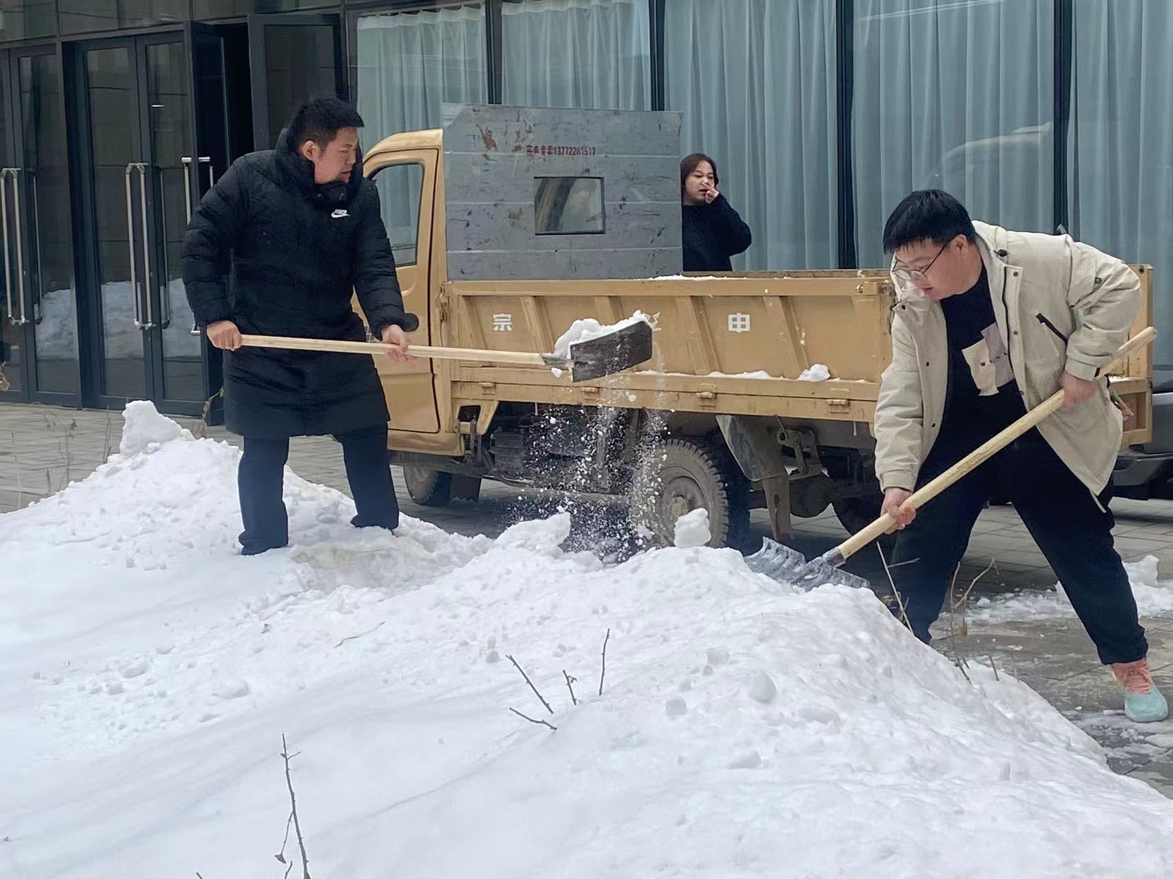 凛冽的寒风、零下的低温、融化结冰的路面,重重困难加大了清扫工作的难度。但这丝毫没有影响同学们除雪的热情,老师现场组织学生划区分工,破冰有条不紊。有人负责用铁锹铲雪,有人用扫帚扫雪,有人用除雪工具推雪,师生们干得分外认真卖力。忙碌的身影在皑皑白雪中显得格外美丽,同学们冻红的脸颊和半弓的身姿诠释了志愿服务的精神,协作除雪的场面为冬日带来温暖,形成雪景之中靓丽的风景线。清洁的大道,给大家带来的不单单是安全方便,更是传递了一份温暖和正能量,活动赢得了师生的纷纷点赞,并陆续有更多的师生加入了除雪行列,除雪场面一片热火朝天的景象。经过3个小时的奋战,鲁艺师生齐心协力,默契配合,发扬不怕苦、不怕累的志愿服务精神,院内主要出行干道、台阶的积雪冰层全部清理完毕。