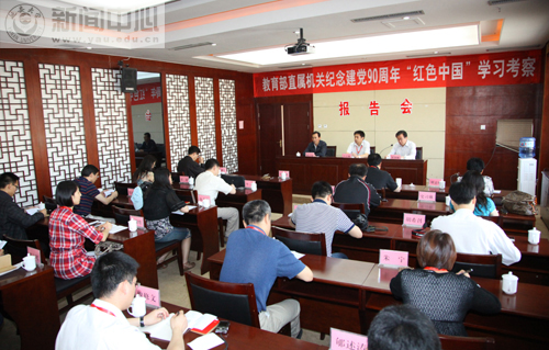 本网讯 今天凌晨,教育部直属机关庆祝建党90周年学习考察培训班一行20余人,由教育部机关党委常务副书记吕玉刚带领,来我校举办以“红色中国”为主题的学习考察活动。