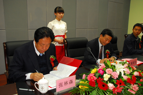 随后,廉振民校长和张林森董事长分别在《延安大学与延长油田股份有限公司校企合作框架协议书》上签了字。