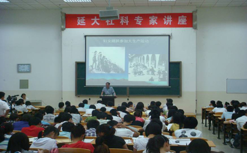 本网讯 6月22日晚,我校陕北历史文化研究院院长任学岭教授在第五阶梯教室,为我校师生作了题为《陕甘宁边区妇女运动——兼论妇女权利保障》的专题报告。本次报告会由社科处和历史文化学院共同举办,是“延大社科专家讲座”系列学术报告的第四场。报告由历史文化学院副院长刘蓉主持,历史文化学院300余名学生及部分教师聆听了报告。