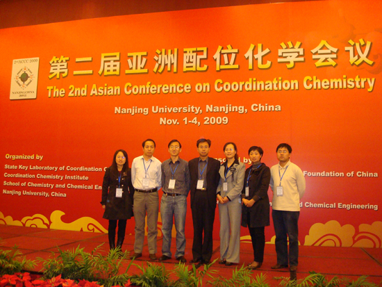 本网讯 11月1日至7日,第二届亚洲配位化学会议在南京召开,来自美国、英国、韩国、日本、香港、台湾等20多个国家和地区的近600位专家学者应邀参加了大会,其中包括美国化学会JACS杂志副主编Truhlar、英国皇家学会Dalton Transactions杂志主编St Andrews等知名教授。我校陕西省反应工程重点实验室功能材料课题组成员付峰、陈小利、王记江、任宜霞、张美丽、唐龙、吴亚盘7位教师应南京大学配位化学国家重点实验室的邀请,参加了此次学术会议,并提交了4篇会议论文,论文以墙报形式进行了展出。