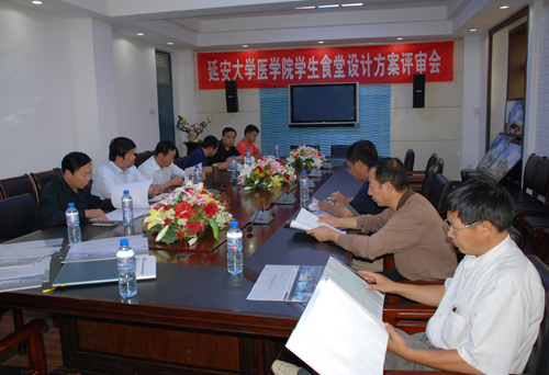 评审会由我校副校长张威虎、王延奇,延安市城乡建设规划局规划科科长马鹏晨及医学院院长苗乃周,基建处处长张兴广、副处长王建勋、郑光明,房产处处长董晓友,后勤管理处处长台世强、副处长王亚轩等相关部门的负责同志组成评审组,担任本次评审会的评审专家。与会专家本着公平、公正的原则,从建筑效果、使用功能、经济适用以及校园环境协调等方面对设计单位的六套方案进行了逐一讨论,最终组形成总评初步意见,报学校研究审定。