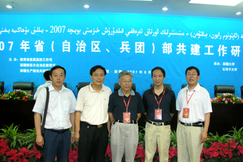 本网讯 8月8日至11日,2007年省(自治区、兵团)部共建工作研讨会在新疆大学和石河子大学召开,教育部党组成员、副部长吴启迪,教育部办公厅秘书林晓青、直属高教司司长高文兵、高教司副司长杨志坚、科技司副司长陈盈晖、国务院学位办副主任郭新立、直属高教司副司长牛燕冰和各有关处室负责人,中国高等教育杂志社总编陈浩,中国高等教育学会副会长蔡克勇,各有关省、自治区、建设兵团教育厅、局负责人,各有关省部共建高校校长和共建部门负责人以及教育部咨询顾问、专家150多人参加了会议。