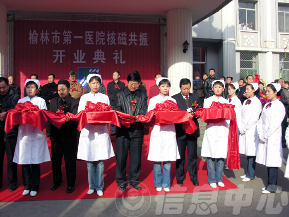 本网讯 12月15日,延安大学医学院第二附属医院暨榆林市第一医院隆重召开核磁共振开业庆典,医学院院长苗乃周出席并为开幕式剪彩。医学院临床医学系主任朱勤厚,医学院实践教学秘书王璐等参加了庆典。