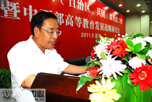 刘建德书记在开幕式上致了辞。他在致辞中代表延安大学全体师生对长期以来关心、支持和帮助延安大学的教育部、陕西省、延安市的领导和兄弟院校表示了衷心感谢。刘书记指出,延安大学自2005年省部共建以来,各项事业进入了全面跨越发展的时期,学校的整体办学水平、办学效益、办学地位和服务社会的能力迈上了一个新台阶。这次会议的举办,对于推进共建高校在新的历史时期的新跨越,促进中西部高等教育事业又好又快发展具有十分重要的意义。