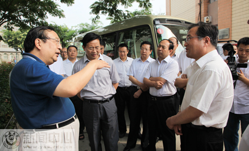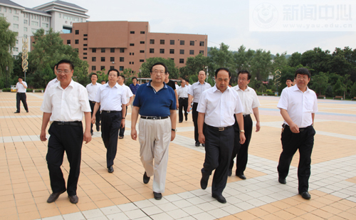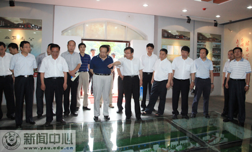 本网讯8月5日下午,国家发改委党组副书记、副主任朱之鑫,由省发改委主任祝作利,中共延安市委副书记、市长梁宏贤和市委常委、常务副市长薛占海等陪同,来我校考察并指导工作。我校党委书记刘建德,党委副书记、校长崔智林,副校长张威虎,以及党委委员、党办主任田伏虎和校办主任姚正宽等接待了朱之鑫副主任一行,并陪同朱副主任等参观了我校校园和校史陈列馆。