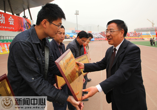 随后,党委书记刘建德,党委副书记、校长崔智林,党委副书记、工会主席高延龙,副校长、延安大学运动会委员会主任胡俊生等为获奖单位颁了奖。