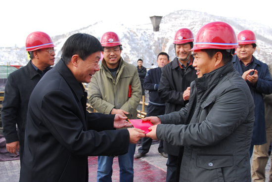 封顶仪式上,廉振民校长和投资方董事长高永生先后向施工单位颁发了奖金。随后,刘建德、廉振民、刘庆利、王延奇、高永生以及其他参加仪式的领导,将最后一斗混凝土拌铲至封顶处。整个仪式简短、紧凑而实在。