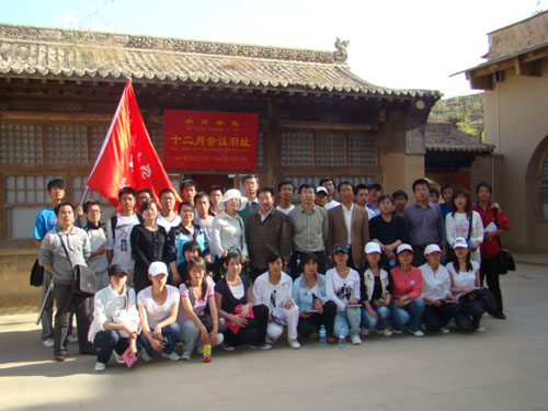 全体师生在米脂杨家沟毛泽东旧居前留念