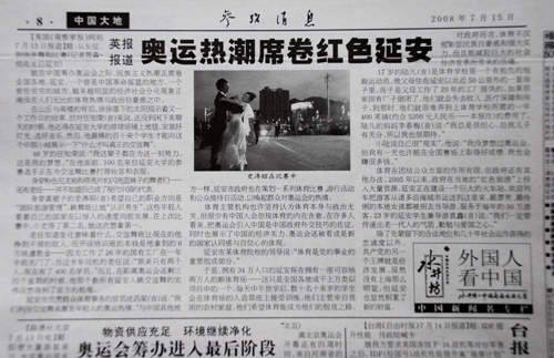 本网讯 7月15日,新华通讯社主办的权威报纸《参考消息》,在第八版“外国人看中国”专栏,转载了英国《观察家报》网站7月13日关于我校及延安的体育报道,《参考消息》为其拟定的标题为《奥运热潮席卷红色延安》。