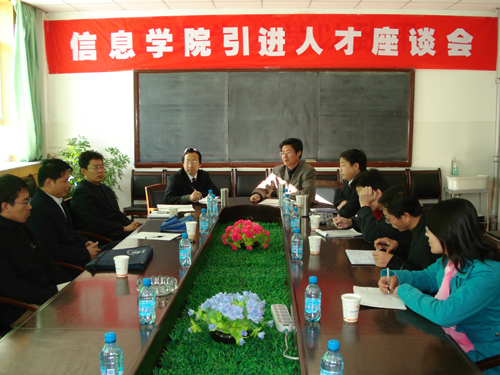 本网讯 10月28日,信息学院召开了引进人才座谈会,学院领导及2003年以来引进的博士、硕士参加了此次会议。会议由学院党委书记白泽生主持。