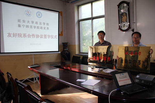 签字仪式前,双方分别介绍了各自院系的基本情况、学科专业设置、办学特色,表达了积极合作的意向,并就具体合作内容进行了交流和探讨。张文生院长指出,两院系在专业建设、师资队伍、办学思路方面都有很大的共同点,在如何开放办学的问题上有很多共识。两院系都有各自优势和特色,合作空间广阔,双方应加强互动、积极作为,促进两个院系的持续发展。杨福和主任认为,延安大学具有悠久的历史和优良的传统,政法学院办学理念清晰、特色鲜明、实力较强。愿意吸纳更多延大的治校建院实践经验,不断提高政史系的办学水平。