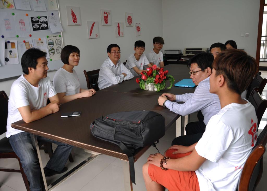 田伏虎副书记在交谈中指出,成立红色文化设计工作室是我校贯彻中省关于大学生创新创业要求的具体举措。作为我校首批创业团队之一,红色文化设计工作室对于提高学生的专业实践能力、团队合作能力和就业竞争能力具有重要的意义。红色文化是延安的特色资源,也是延安大学的特色资源,工作室今后要坚定不移地发挥红色文化比较优势,把研究和工作方向聚焦在延安的红色资源和文化资源这个核心上。