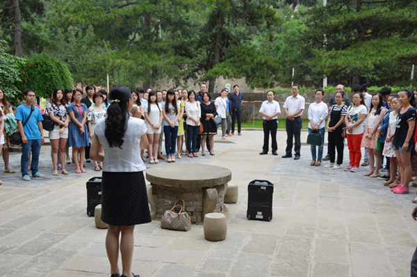 本网讯 为了深入学习习近平总书记“三严三实”讲话精神,积极推进党员教育工作,丰富党员培养模式,切实加强新形势下党建工作,6月27日上午,外语学院组织全院教职工党员和学生党员,在杨家岭革命旧址中共大礼堂前组织开展了现场教学和纳新党员入党宣誓活动。学院党委书记董振文、院长吴卫东等领导及全院教工、学生党员共计80余人参加了本次活动。活动由学院党委副书记王随卷主持。