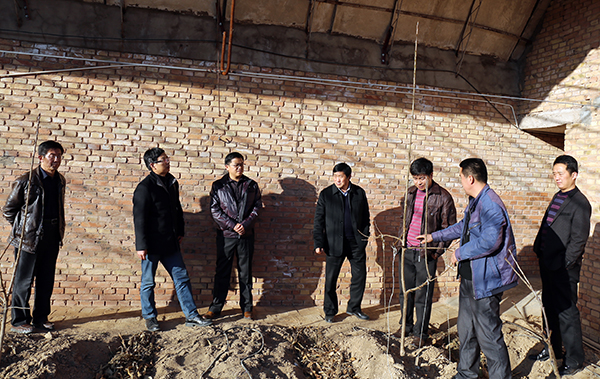 生命科学学院一行5人首先来到甘泉县道镇考察了红枣矮化栽培以及设施防裂果试验示范基地。随后赴甘泉现代农业示范园(延安纪丰农业开发有限责任公司),在董事长纪斗贵、农业园区经理白旭东、技术员张春林等人的陪同下,参观了果蔬气调库、连栋温室育苗、草莓食用菌立体栽培、温室草莓、大棚小瓜、大棚樱桃与桃以及设施养羊、养猪等项目。在园区办公室,校地(企)双方就园区运营、科研合作模式、目前面临困难的解决途径等问题进行了深入交流和讨论,取得以下成果:一、校地(企)科研合作协议达成一致意见;二、针对园区目前实际,尽快采集土壤样品,进行理化指标的测定,为生产实践中出现的死苗、枯苗、板结等问题的解决提供理论依据;三、针对园区经营实际,就品牌蔬菜的打造、配送和观光、采摘、认知现代农业园区的规划提出可行性建设意见。