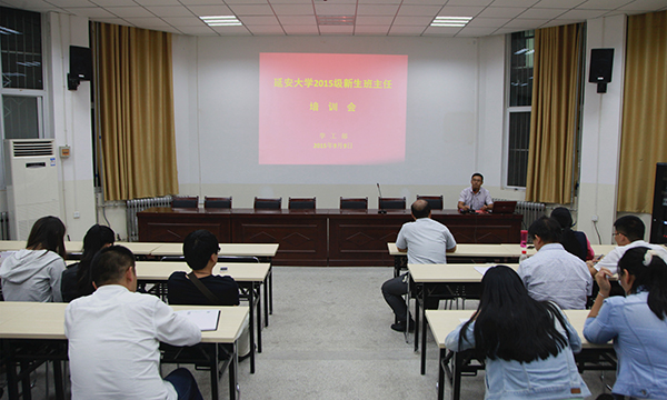 本网讯 9月9日晚,我校2015级新生班主任业务培训会在校第一阶梯教室举行。学工部副部长马小惠、教育管理科负责人、2015年新入职辅导员以及全体新生班主任约60多人参加了培训。培训会由副部长马小惠主持。