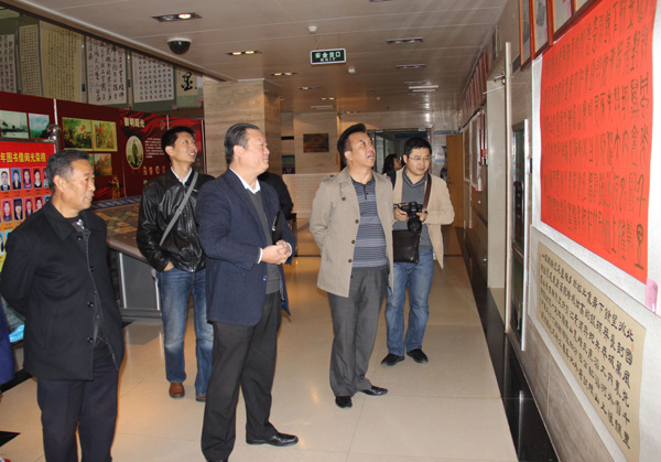 会议结束后,上官养志一行来到图书馆二楼大厅,参观了我校离退休职工欢庆重阳节书画作品展,双方商定于11月中旬,在我校举办陕师大、延大离退休职工书画作品联展。