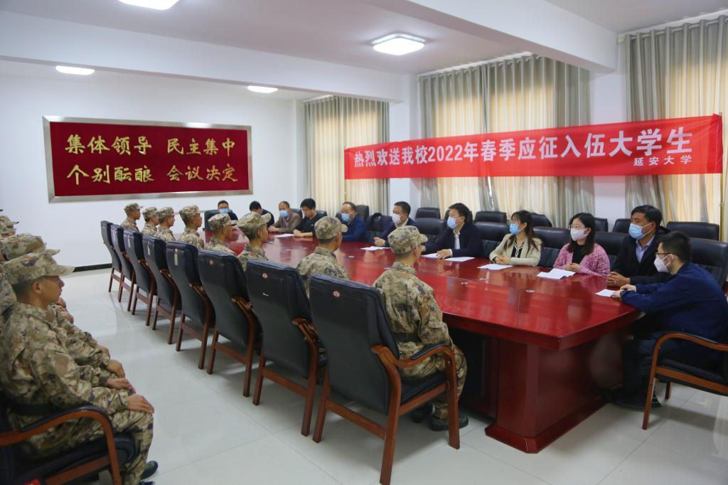 2022年春季征兵工作从2021年12月初开始至2022年3月下旬结束。为了鼓励有志大学生参军入伍,学校下发《关于加强大学生征兵工作的通知》,不断完善大学生应征激励政策和退伍学生服务机制鼓励学生参军入伍,同时通过线上线下多形式持续开展征兵政策宣传,主题班会、退伍学生宣讲和退伍学生优秀事迹宣传,一对一政策解答,重点学生跟踪等多形式的宣传动员,确保了征兵政策宣传全覆盖。我校学生应征报名热情高涨,有240余名同学从陕西省应征报名,其中有47名同学从学校应征报名,通过体检政审复检等层层筛选,16名同学定兵;有11名女同学正参加延安市军分区组织的役前集训,另有20余名从地方应征的男同学正在参加应征地组织的集训。