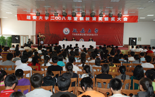 本网讯 5月12日下午,我校在学生活动中心召开延安大学2008年宝钢教育奖颁奖大会,对我校获得2008年宝钢教育奖的优秀教师和优秀学生进行表彰。宝钢教育基金会秘书处业务主管罗建辉女士,我校校长廉振民,副校长、我校宝钢教育奖评审工作委员会主任委员胡俊生,教务处副处长、我校宝钢教育奖评审委员会办公室主任武忠远等出席了颁奖大会,会议由胡俊生副校长主持。人事处、科技处、学生处、研究生学院、团委等部门主要负责人,各学院师生代表及教务处全体人员参加了会议。