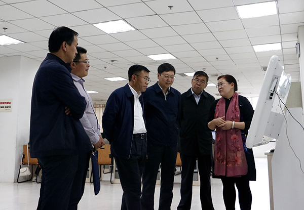 本网讯 5月10日下午,教育部党组成员、部长助理刘大为,在我校校长张金锁、副校长马勇及相关部门负责人的陪同下,实地参观了教育部人文社会科学重点研究基地延安大学中国共产党革命精神与文化资源研究中心资料室、办公室和红色资源数据库建设平台,听取了研究中心关于资料图书建设、研究成果、研究规划和延安时期中共中央机关报全文数据库建设情况的汇报。