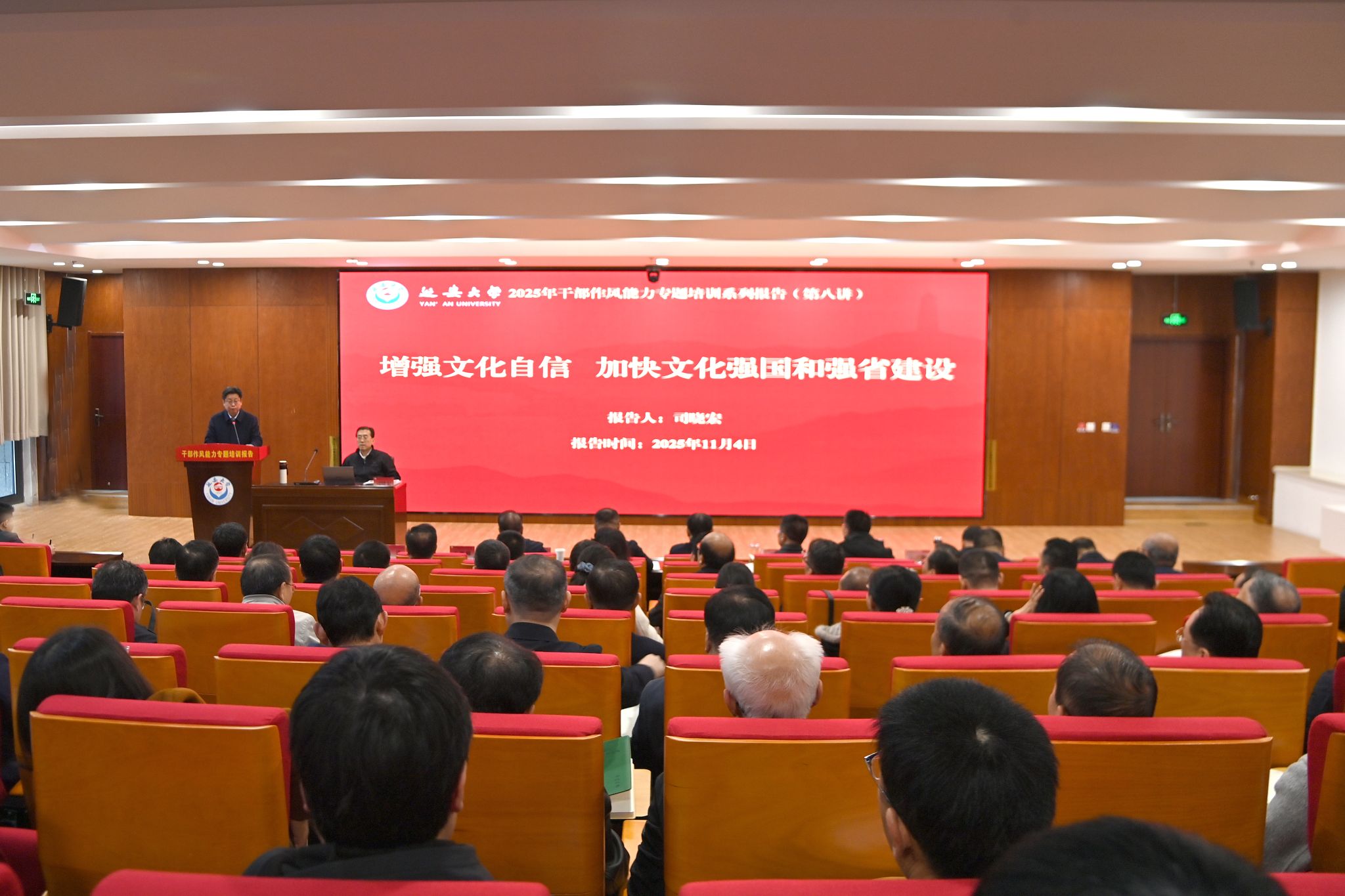 司晓宏以《增强文化自信 加快文化强国和强省建设》为题,围绕“文化建设的内涵特质,文化建设的价值意蕴,加强文化建设的指导思想、目标任务和基本原则,陕西推进文化建设的任务与举措”等四个方面,对文化建设进行了系统解读和深入阐释。报告紧密结合深入学习贯彻党的二十届四中全会精神,深入贯彻落实习近平文化思想,对标加快建设文化强国和文化强省的战略部署,聚焦高校大学文化建设和干部作风能力提升的实际需求,具有很强的思想性、指导性和实践操作性。