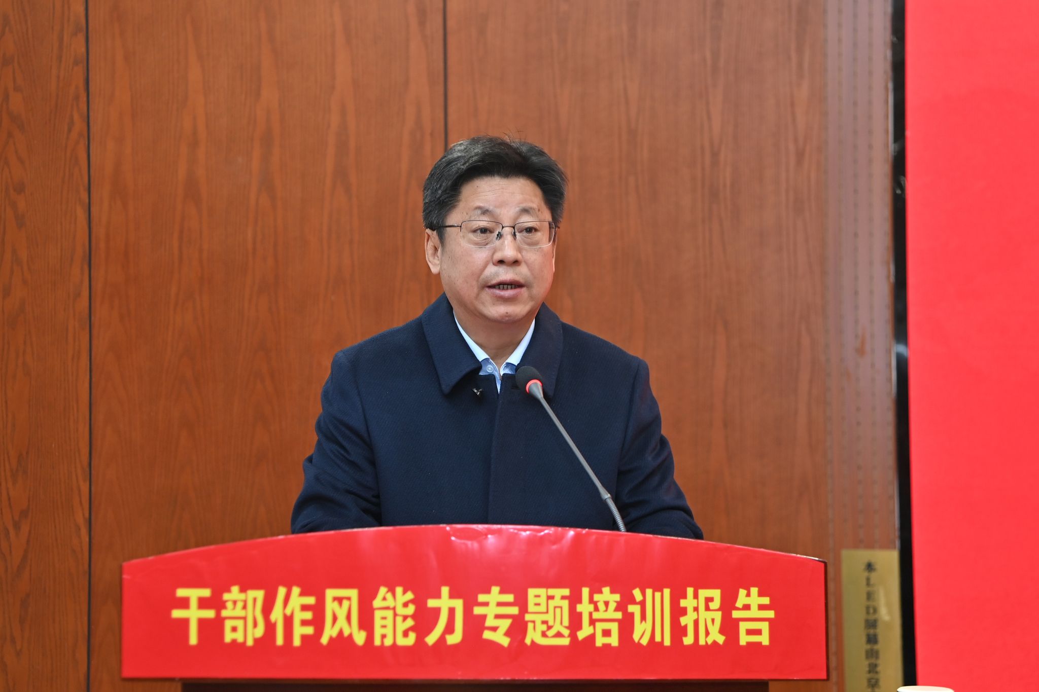 本网讯 11月4日上午,我校2025年干部作风能力提升专题培训(第八讲)在行政楼一楼报告厅举行。陕西省社科院原党组书记、院长,二级教授、陕西师范大学博士生导师司晓宏受邀为我校党员干部作专题报告。校党委副书记吕达主持会议。