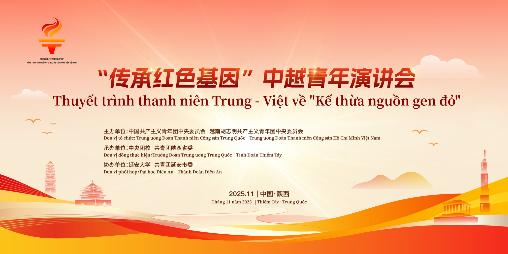 11月5日,以“传承红色基因”为主题的中越青年演讲会在延安大学举行。本次演讲会是由共青团中央联合越南胡志明共青团中央共同主办的越南青年来华“红色研学之旅”之“红星闪耀”研学营的重点活动之一。来自中国和越南的青年公务员、共青团干部、青年媒体人、青年艺术家、青年企业家和大学生代表等260余人参加。