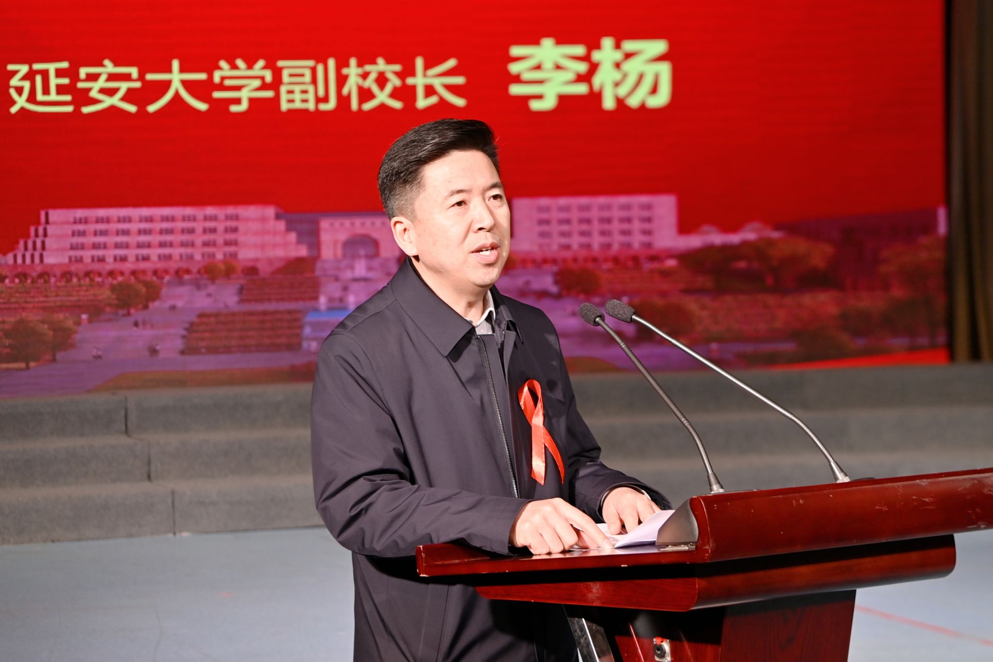 本网讯 11月11日,“美好青春我做主”2025年红丝带青春校园行走进延安大学活动在我校杨家岭校区隆重举行。中国性病艾滋病防治协会副会长、中国疾病预防控制中心艾滋病防治首席专家韩孟杰,陕西省卫生健康委二级巡视员张宇峰,延安市政府副秘书长曹渊博,我校副校长李杨出席活动并致辞。