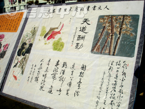 本网讯:2006年12月28日,由人文学院学生书画社---人文书画社举办的“庆元旦”书画展在校园内展出。展出集中展示了人文学院师范生的书法、绘画作品30余幅,向全校师生献上一份节日的厚礼,受到了广大师生的好评。