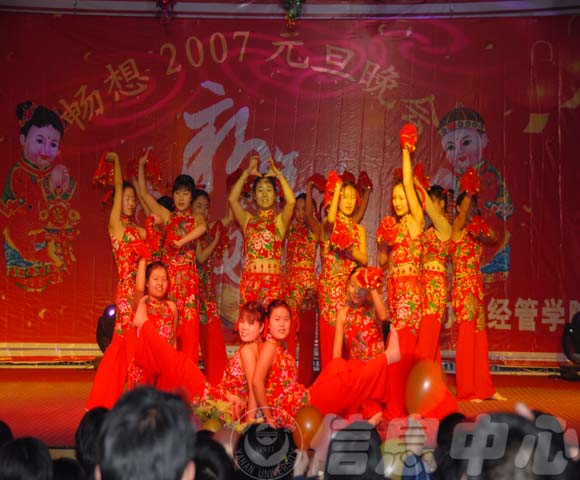 本网讯:12月25日晚,经管学院在我校学生活动中心举行了“畅想2007元旦文艺晚会”,宣传部、学生处、团委等部门领导及我院教师与上千名同学共同观看了晚会,礼堂座无虚席,现场气氛热烈。