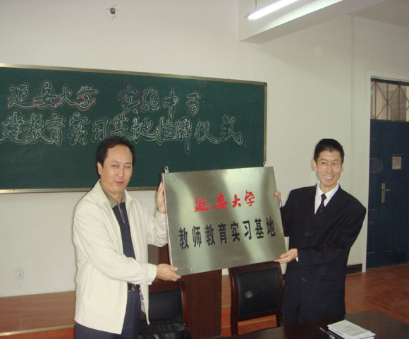 作者:解文元 杭涛 稿源:教务处 发稿时间:2006年10月20日 本网讯:2006年10月19日上午8:30,延安大学与延安市实验中学共建教育实习基地挂牌仪式在延安市实验中学会议室隆重举行。