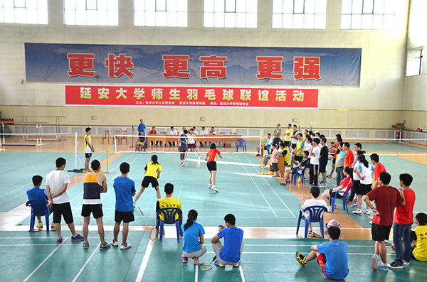 本网讯 7月1日下午,由校工会、体院主办,羽协承办的“毕业季——延安大学师生羽毛球联谊活动”在校体育馆举行,胡俊生副校长,工会主席白泽生,教务处处长武忠远,附院工会主席沙文江,体育学院院长郑兵,学工部朱伟等与师生一同参加了联谊活动。联谊活动由校办马社举副主任主持。