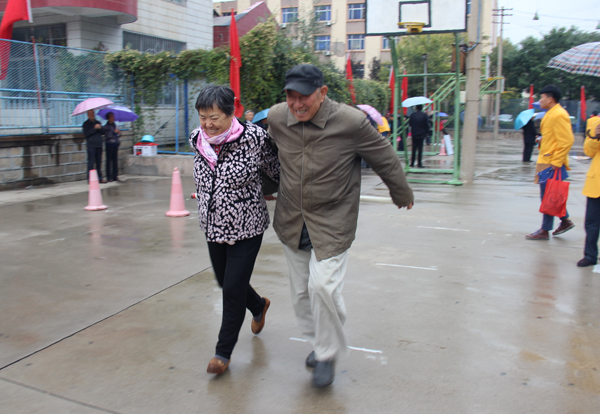 在随后的比赛中,老运动员们以饱满的精神参加了搬运西瓜、投篮比准、仿保龄球、打靶比准、托球竞快、收金银果、同向并行等七个项目的比赛,参与人多,授奖面宽,虽然天公不作美,细雨濛濛,但这并不影响老人们的热情与斗志,大家高高兴兴地度过了一个简朴、热闹、开心的重阳节。