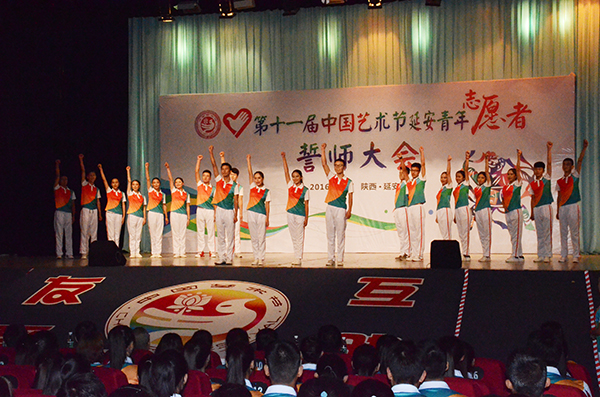 中国艺术节是具有全国性、群众性的重要国家文化艺术节日,作为中国规格最高、规模最大、最具影响力的国家级文化艺术盛会,每三年举办一届。第十一届中国艺术节将于2016年10月15日至30日在陕西举行,并于10月15日在延安市开幕,届时将有党和国家领导人,中央和国家部委部级领导,各省、自治区、直辖市代表团成员,各省演职人员等2000余人出席。本次艺术节志愿者在全省19所定点高校共招募1500名,延安的500名青年志愿者全部从我校选拔,将服务此次艺术节开幕式、群星奖、文华奖、演交会等在延安的各项活动。