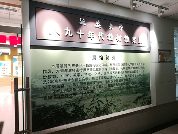 “延安大学八九十年代教材教案展厅”是档案馆(校史办)2016年申请的专项建设工程,历经一年精心设计与布展,也于近日完成建设任务。该馆主要展出了我校18位教师的300余份教案,包括中文、数学、物理、化学、医学系的300余本自编油印教材,以及200多张照片和部分实物,集中展现了学校上世纪八、九十年代的教育教学风貌,体现了我校教师艰苦奋斗、忠于职守的师德精神与延大情怀,是对档案馆馆藏档案的一次有效开发利用,是学校校史馆的有益补充,将为我校今后的师德师风教育增添新的素材。