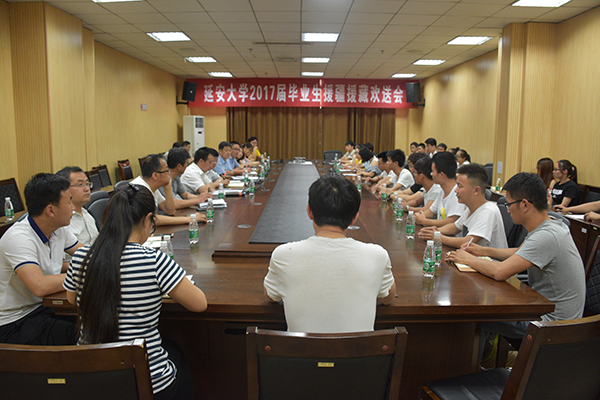 田伏虎副书记代表学校向即将奔赴新疆、西藏担任基层公务员的33名家庭经济困难毕业生发放了基层就业奖励金,并作了《践行延安精神,边疆建功立业》的讲话。田伏虎副书记在讲话中表达了对同学们援疆援藏高尚选择的崇高敬意,并对毕业生提出了四点希望:一是永远践行延安精神,要有坚定正确的政治方向,坚定的理想信念;继续加强理论学习,解放思想,实事求是,提高自身的业务能力;要把全心全意为人民服务贯穿在工作学习之中;要继续发扬自力更生、艰苦奋斗的创业精神,有吃下苦、扎下根、耐下劳的思想准备。二是正确对待组织分配的工作,干一行,学一行,爱一行,精一行,提高自身的综合素质并对自己的今后发展做出规划。三是要有团结协作的包容意识和共同发展进取精神,搞好与同事的关系,搞好与群众的关系,尽快融入到当地的工作生活中去。四是能够将在边疆的工作、生活状态及时向母校汇报。