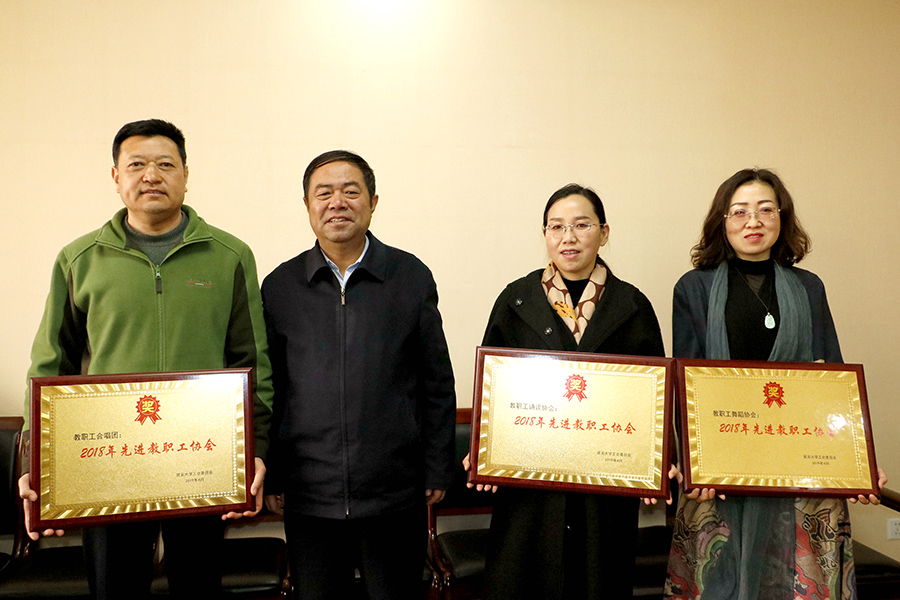 随后,工会副主席成铭宣读了《关于表彰2018年先进教职工协会的通知》,王顺副书记为获奖的教职工舞蹈协会、教职工诵读协会、教职工合唱团颁发了奖牌。工会副主席雷志强宣读了校工会2019年工作要点,并对校工会近期工作进行了安排部署。校工会史晓霞对我校第四十三届田径运动会开幕式文艺表演节目进行了任务分解,财务处曹晓琴对工会经费使用与管理中的注意事项进行了说明。