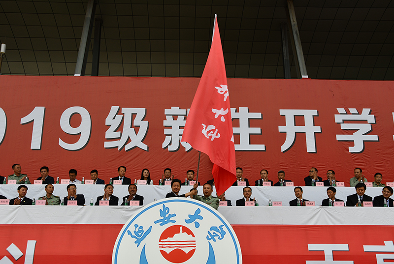 本网讯 9月9日上午8时30分,我校在杨家岭校区田径场隆重举行2019级新生开学典礼暨军训动员大会,我校党委书记薛义忠,党委副书记、校长张金锁,党委副书记田伏虎、王顺,纪委书记苏醒仁,副校长陈华、王刚、杨伟宏,军训指导教官张逆峙上校、许笛上校、杨军中校以及我校各学院院长、有关职能部门负责人等在主席台就座。承担本次军训施训任务的我校退伍复学的40余名大学生,各班班主任、辅导员,2019级3950名本科生和811名研究生参加了开学典礼。我校党委副书记田伏虎主持开学典礼暨军训动员大会。