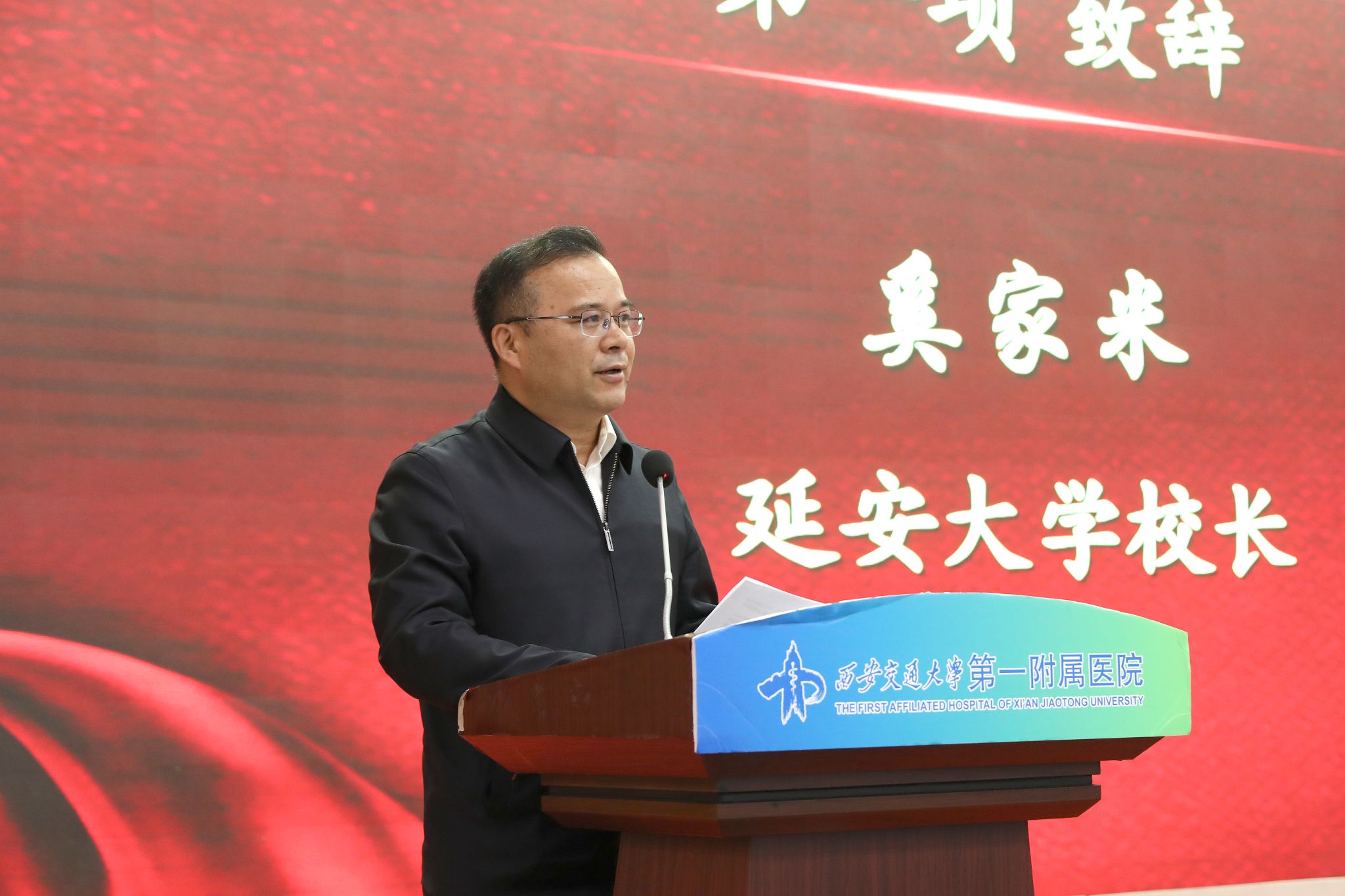 奚家米在致辞中对省劳模工匠健康服务行动正式启动表示祝贺。他指出,延安大学自诞生之日起,就始终与党和国家同呼吸、共命运,把服务国家战略和区域发展中心工作作为天然使命,延安大学附属医院此次被遴选为“陕西省劳模工匠健康服务医院”,学校深感使命光荣、责任重大,必将倍加珍惜、不负重托,以最优医疗资源、最强专业团队、最暖服务举措,全力守护全省劳模工匠身心健康。他希望,与各兄弟院校、友好单位深化务实合作,携手互促共进,共同为谱写陕西新篇、争做西部示范贡献更大力量。