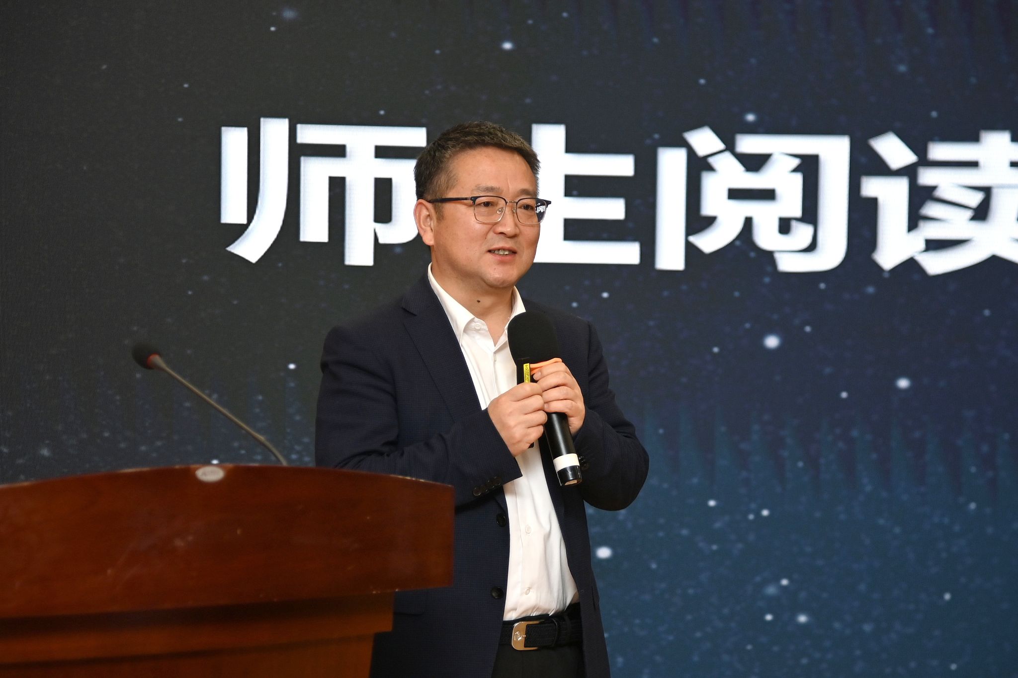 李享阳在讲话中指出,推进师生阅读是长期系统工程,要加强组织领导,健全长效机制,校长、教师带头阅读,形成学校带动学生、学生影响家庭的良好生态;要整合各方资源,凝聚学校、家庭与社会力量,发挥媒体宣传引领作用,推广先进经验、推介优秀书目、展示阅读成果,营造全域书香氛围;注重分层分类,结合不同学段特点与专业需求,提供阶梯式阅读内容,设计多样化活动,推动阅读资源均衡发展;要善用智能技术,以积极审慎、守正创新的态度,探索“AI+阅读”新模式,为传统阅读注入新活力。