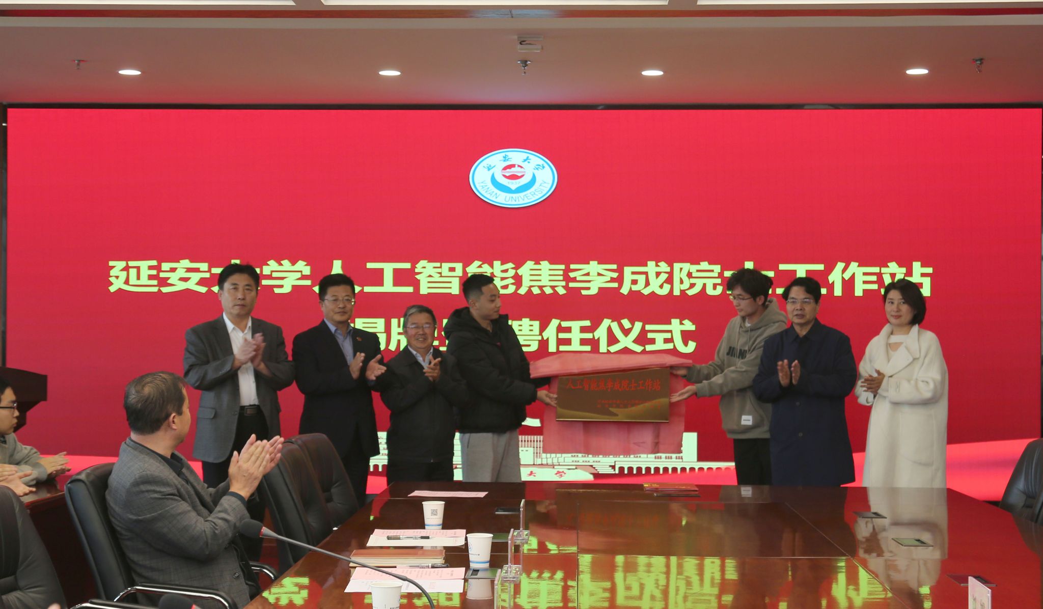 聘任仪式上,王延峰介绍了焦李成院士的基本情况及其在相关学科领域取得的重要科学成就。张彦强宣读了《关于设立延安市人工智能焦李成院士工作站的批复》,我校人事处处长雷伟宣读了《关于聘任焦李成院士为延安大学人工智能首席科学家的通知》。焦李成院士、杨伟宏副校长、张彦强副主席共同为延安市人工智能焦李成院士工作站揭牌。陈玲总经理、雷伟处长见证揭牌。