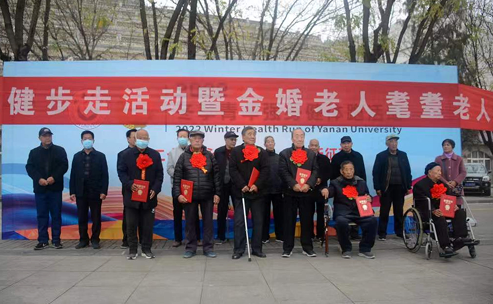11月10日下午,在窑洞广场举行了老年健步走暨金婚老人耄耋老人祝福仪式,全校近300名离退休职工参加了该活动。离退处曹钦明副处长主持了祝福仪式,首先他宣读了延安大学2022年度耄耋老人名单。随后,离退休党支部和老年社团负责人为参加仪式的宋捷等6位耄耋老人佩戴了光荣花,颁发了荣誉证书和耄耋纪念品。最后,离退处王春发处长致辞,向年满90岁的上寿老人、年满80岁的耄耋老人表示衷心祝贺。
