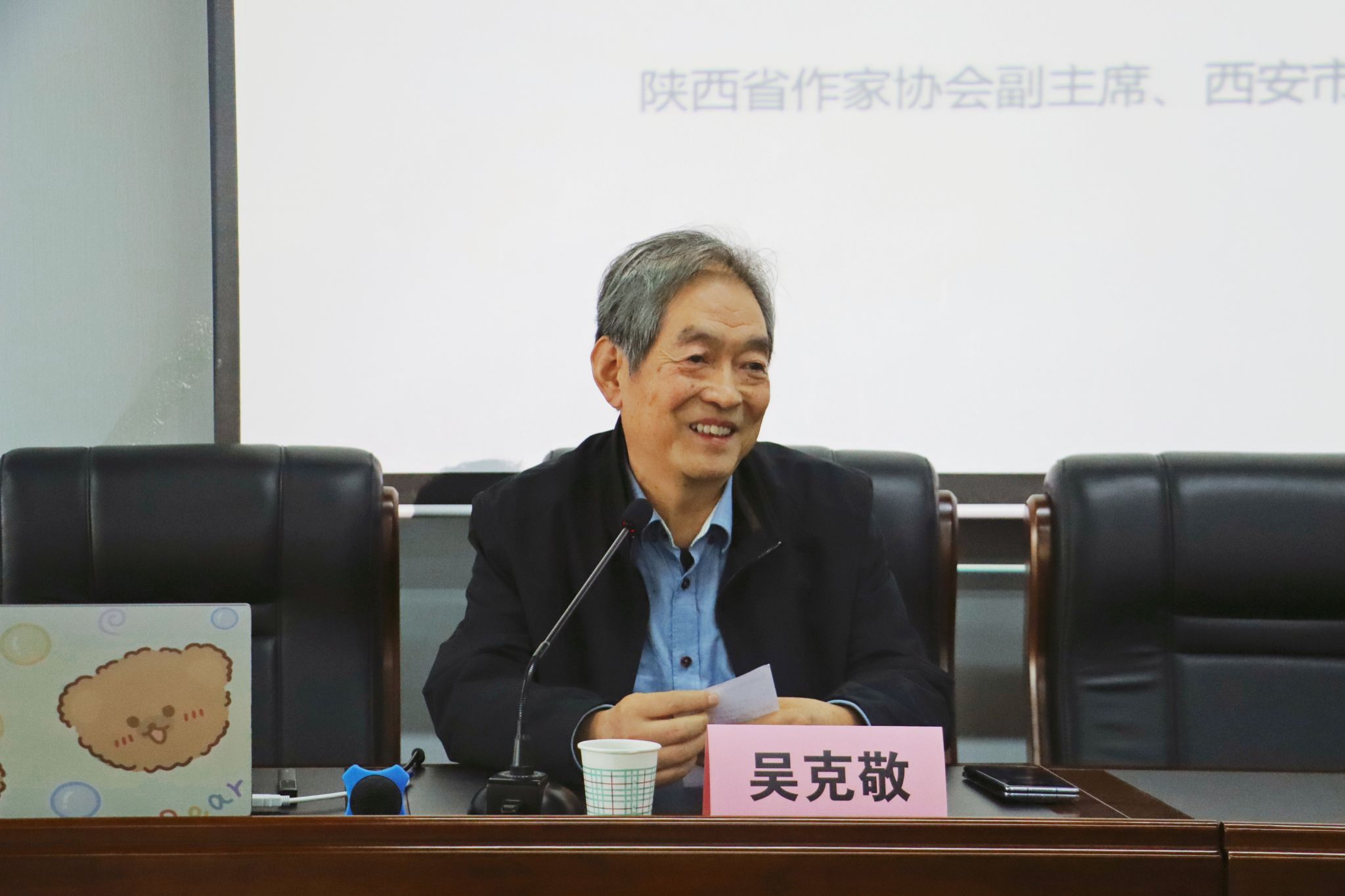 本网讯 10月29日下午,受社科处和文学院邀请,陕西省作家协会副主席、西安市作家协会名誉主席吴克敬做客文学院“文汇大讲堂”,为文学院师生作《热爱文学的几个理由》主题讲座。讲座由文学院院长党子奇主持,社科处处长王俊虎及文学院师生代表200余人参加讲座。