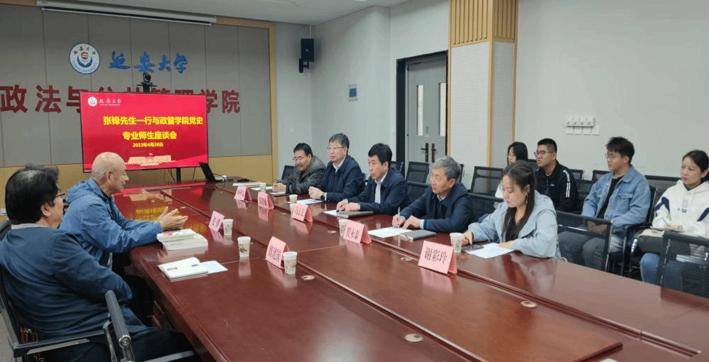 贺永泰介绍了政治学学科发展的基本情况,对张锋总编笔耕不辍,数十年来深入考证谢子长研究的相关史料,表达了钦佩和敬意;邹腊敏介绍了学院中共党史专业办学历史和发展情况,并针对陕甘革命史的相关史实史料问题进行了专业的学术探讨。党史专业研究生也就相关专业问题与两位专家进行请教和交流。