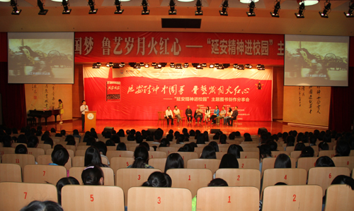 本网讯 在纪念毛泽东同志《在延安文艺座谈会上的讲话》发表72周年之际,由中国出版集团、中央电视台科教频道、陕西广播电视台纪录片部、中国民主法制出版社主办,我校党委宣传部、延安市延安精神研究会和中国人民解放军第四军医大学承办的延安精神中国梦·鲁艺岁月火红心——延安精神进校园主题图书创作分享会于5月22日在我校举行。我校党委副书记吴耀,中国出版集团、中央电视台科教频道、陕西广播电视台、中国民主法制出版社、《中国电视报》、延安市延安精神研究会、第四军医大学、西安交通大学、西安石油大学等单位的相关领导,以及《延安延安》纪录片及图书创作团队、片中受访者代表、红二代代表、学生代表等出席了这次活动,与我校学子齐聚一堂,讨论分享延安精神。