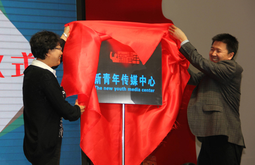 | 韩琳部长和李扬书记为新青年传媒中心揭牌 |